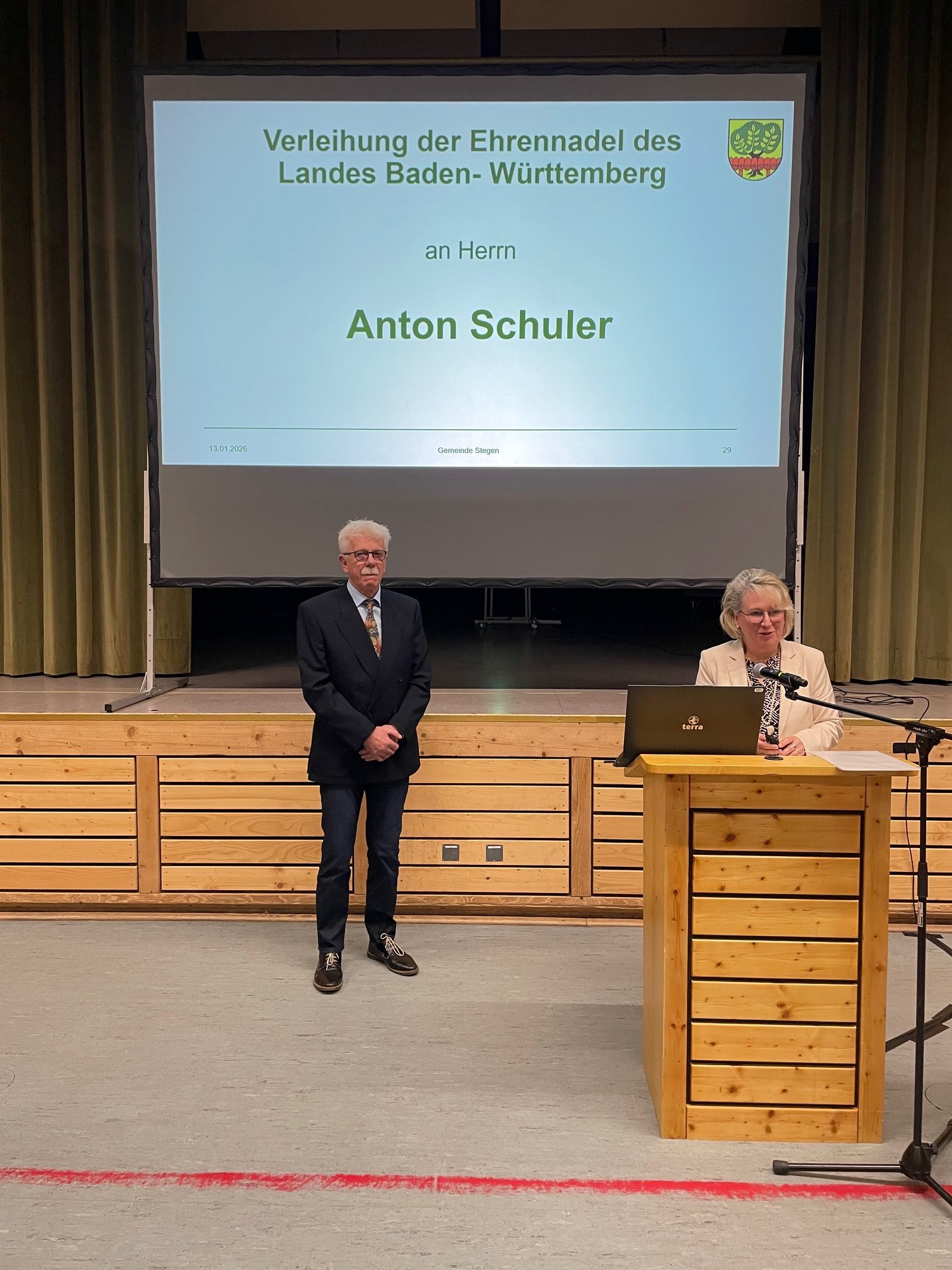 Im Rahmen des Neujahrsempfangs in Stegen erhielt unser Ehrenmitglied Anton ‚Toni‘ Schuler die Ehrennadel des Landes Baden-Württemberg⊂ als würdige Anerkennung für seine mehr als 50-jährige, unermüdliche ehrenamtliche Tätigkeit als Nikolaus
